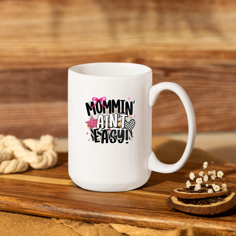 Retro Checkered Leopard Mommin’ Ain’t Easy Christian Mama Mug