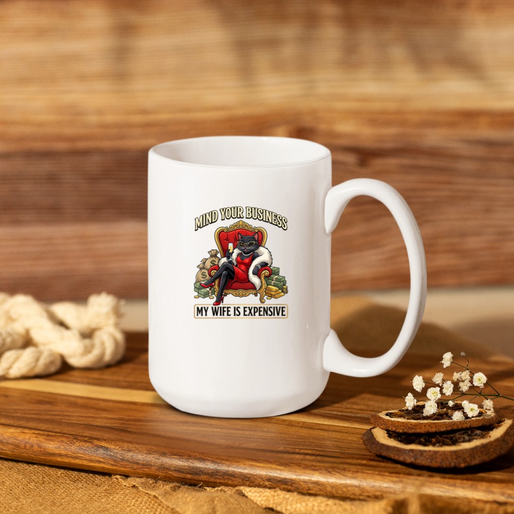 Women’s Mind Your Business My Wife is Expensive Funny Black Cat Lady Mug