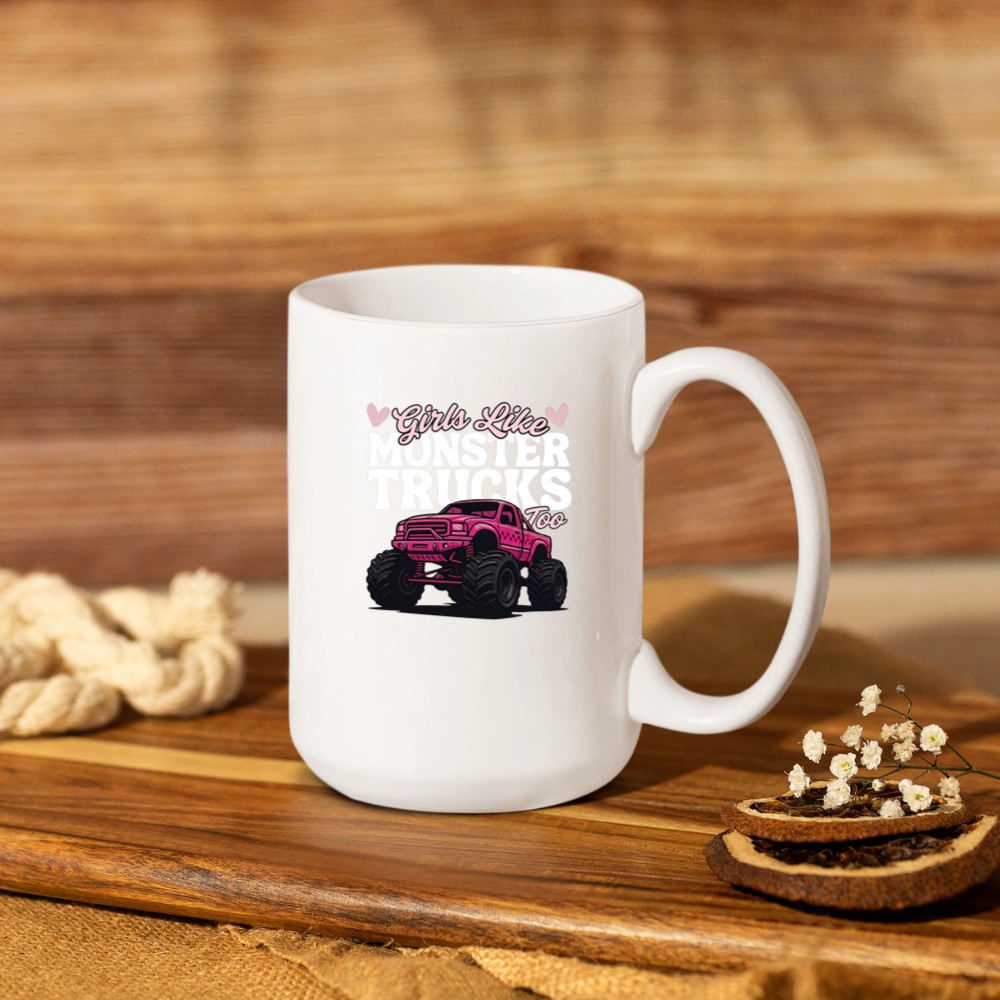 Girls Like Monster Trucks Too Funny Mom Daughter Matching Pullover Mug